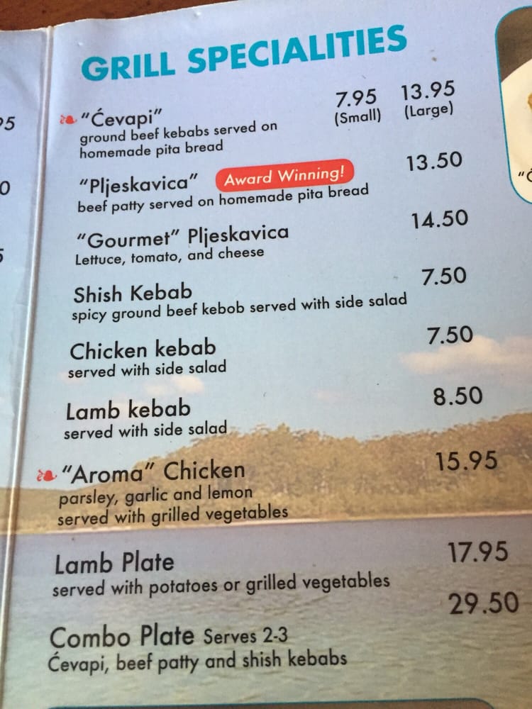 Serves 2 to 3. (10) cevapi, (1) beef patty, and (2) shish kebabs or (30) evapi.