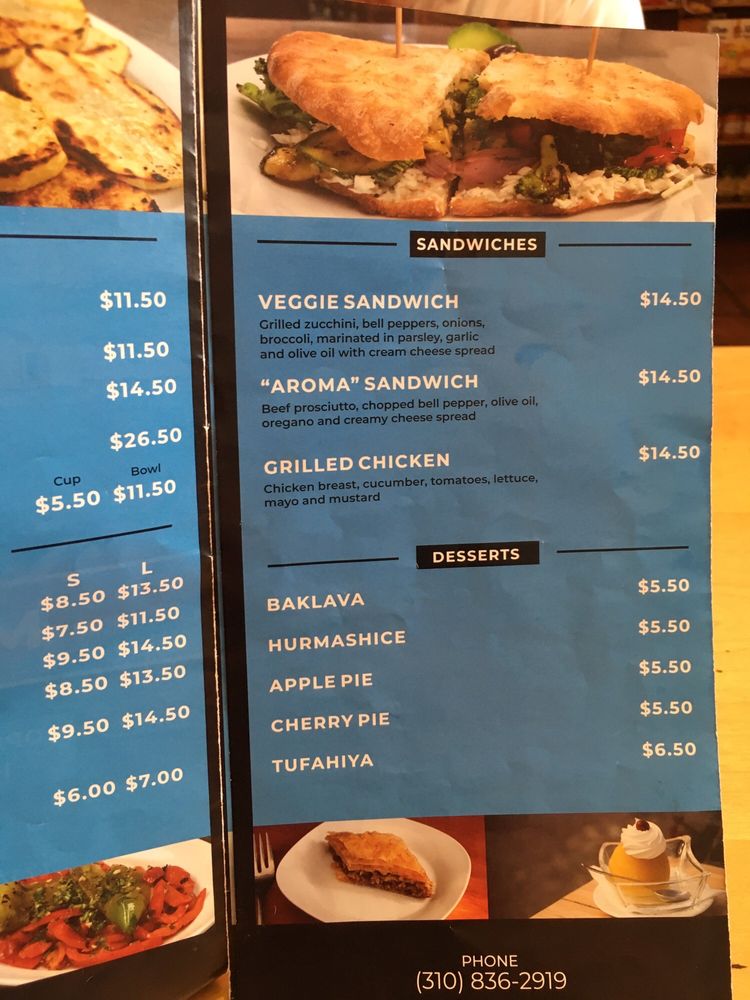 Welcome to Aroma Cafe, nestled in the heart of Los Angeles at 2530 Overland Ave. This charming eatery invites you to explore a menu that beautifully captures the essence of Mediterranean dining.